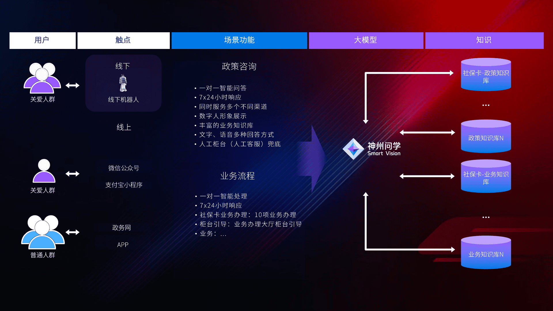 在服务大厅部署客服机器人,,在线上应用和小程序配置客服数字人,,724小时为群众解答常规问题,,,客服机器人无法处理的,,转现场人工处理。。