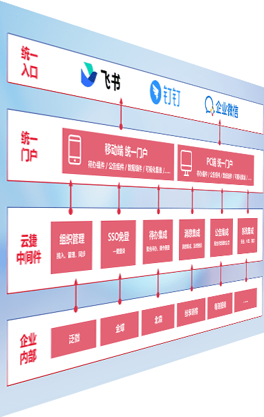 对协作平台提供支持服务,,,支持企业应用与协作平台对接,,,包含组织同步、、、、消息集成、、待办集成等。。。。支持目前主流的协作平台:钉钉、、、企微和飞书。。。。